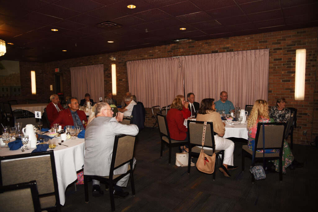 Our new officers were installed at a dinner on September 19, 2024. Kiwanian Bruce Buchan was awarded the Community Service Award for his work with Weekend Wheels. Candi Fusco received the President’s Award.